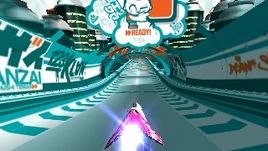 - On the final straight of the track, Curly from Wipeout 3 can be heard.