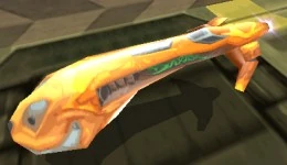 The Daxtinator craft is an exclusive craft based on the "Daxter" PlayStation Portable game. This craft is unique in that it is styled after Daxter from the Jak and Daxter series, even his face can be observed on the nose of the craft. As for performance, it's otherwise average, but does have a great handling. Therefore, this craft could be compared to the Harimau, but with one more point to the shield.